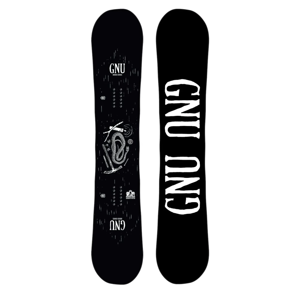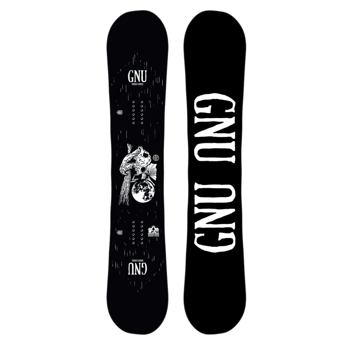 Asymmetry – The human body is asymmetric. Turn mechanics on a toe and heel side turn are completely different. GNU builds in asymmetric balancing concepts to each side of your snowboard harmonizing with nature and creating a more efficient, less tiring, unreal ride.