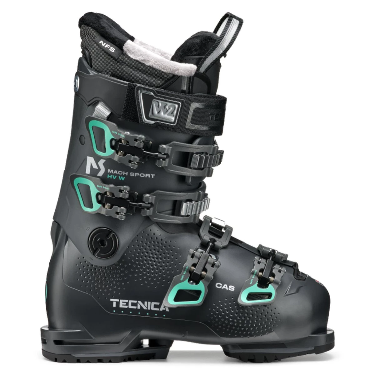 A ski boot that delivers comfort and confidence, the Mach Sport HV 85 W is designed for intermediate female skiers with higher volume feet. Women’s specific features include the Cuff Adapt System, which quickly and easily adjusts volume around the calf to fit a variety of lower leg shapes, and the Women’s Natural Stance, which places you in a perfectly balanced position. An anatomically-shaped NFS liner with Celliant offers warmth and a comfortable, secure fit. If needed, you can also add personal customization with Tecnica’s C.A.S. system to solve any additional fit problems. An 85 flex provides great support, while the Double Quick-Instep and Lift-Lock buckles make for easy entry and exit. The Mach Sport HV 85 W combines the comfort needed to keep you on the mountain longer with the performance required to take your skiing to the next level.